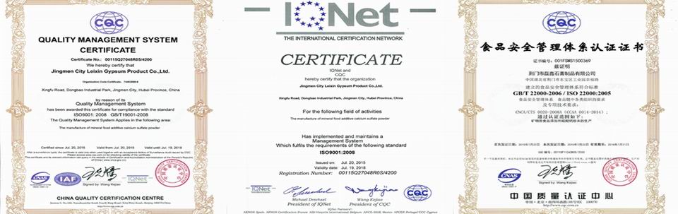 荊門(mén)市磊鑫石膏製品有限公司は石膏製品の研究、生産と販売を一體にして、一流の技術(shù)的な企業(yè)である。工場(chǎng)は荊門(mén)市東寶工業(yè)園に位置して、面積も25000平方メートルになります。當(dāng)社は磊鑫、杰普生、凱氏蘇特という三つの商標(biāo)をもって、特許も二つがある。主な製品は醫(yī)薬品グレード製品、食品グレード製品、農(nóng)業(yè)グレード製品と建築材料などがある。経済的な価格と最高の品質(zhì)で、當(dāng)社は優(yōu)秀な製造商として、世界中に多くの有名な企業(yè)と協(xié)力しています。インポートとエクスポートの権利を持って、當(dāng)社の製品は韓國(guó)、日本、ロシア、ヨーロッパなどのマーケットにもよく販売されています。お客様に対して、神様のように正直します、お品質(zhì)に対して、命のように頑張ります。當(dāng)社と協(xié)力することはあなたの正しい選択で、共に進(jìn)むことはわたしたちの同じ目標(biāo)である。今後ともご指導(dǎo)ご支援を賜りますよう、どうぞよろしくお願(yuàn)い申し上げます。 ――中國(guó)最高の石膏(硫酸カルシウム)製造商になる ――CGC·磊鑫石膏